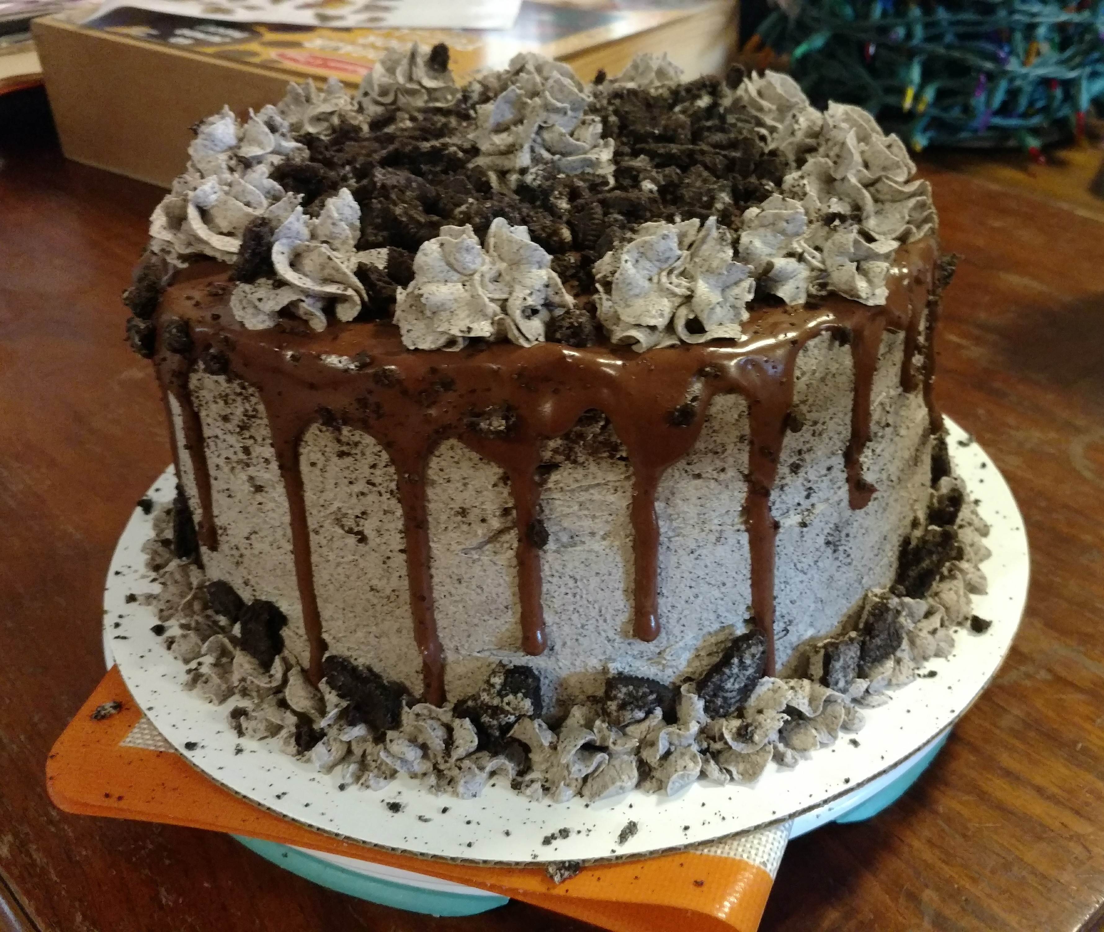 Last minute Oreo cake I made for my brother. Frosting was from www.reddit.com
